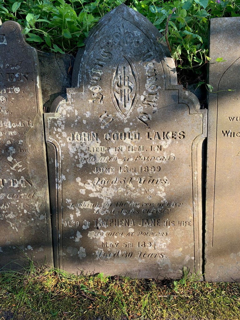 Ancestry research – 1881 census shows Tryphena aged 17, born in Polruan, working as a general servant in Talland Street, Polperro. She married John G Lakes in 1884 and by 1891 census it shows Tryphena as a widow, in the Coombs, Polperro, with two young daughters Elsie aged 5 & Nora aged 2 years. Another 3 years later in 1894, aged 30 years, Tryphena dies and the two young girls go to live with Aunt Annie, in Hampshire.