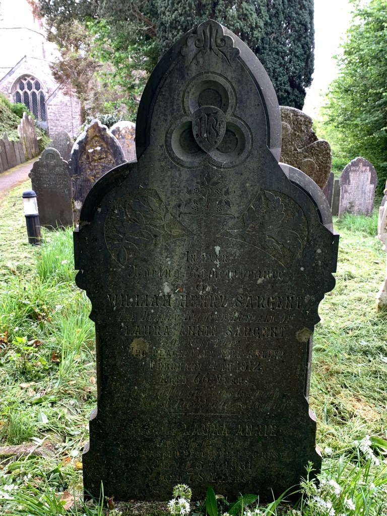 ~ Slate ~ Gothic top with indented sides and convex shoulders, central decorative IHS motif and leaves, with kerbs