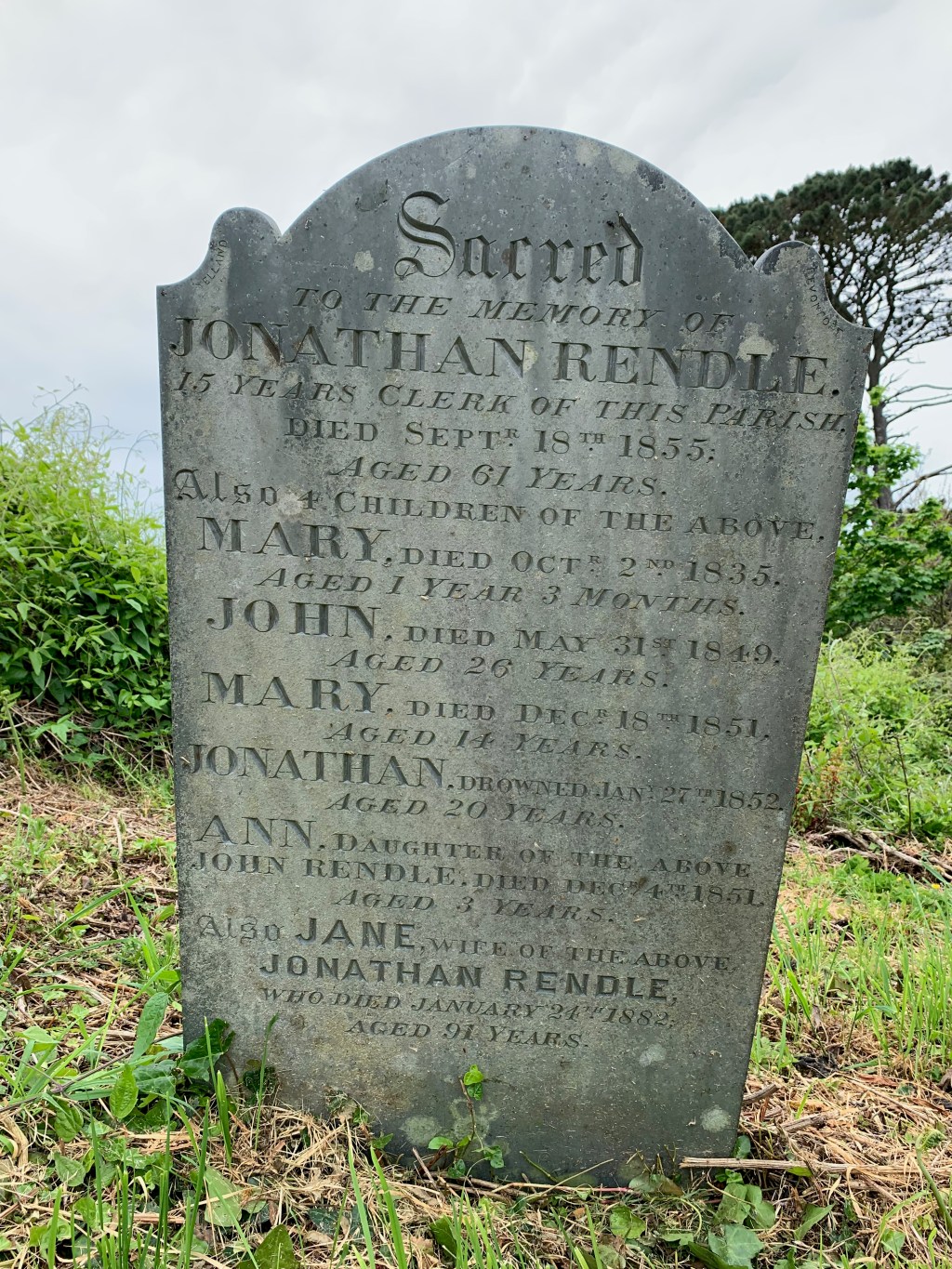 - Jonathan Rendle 1794 – 18 September 1855