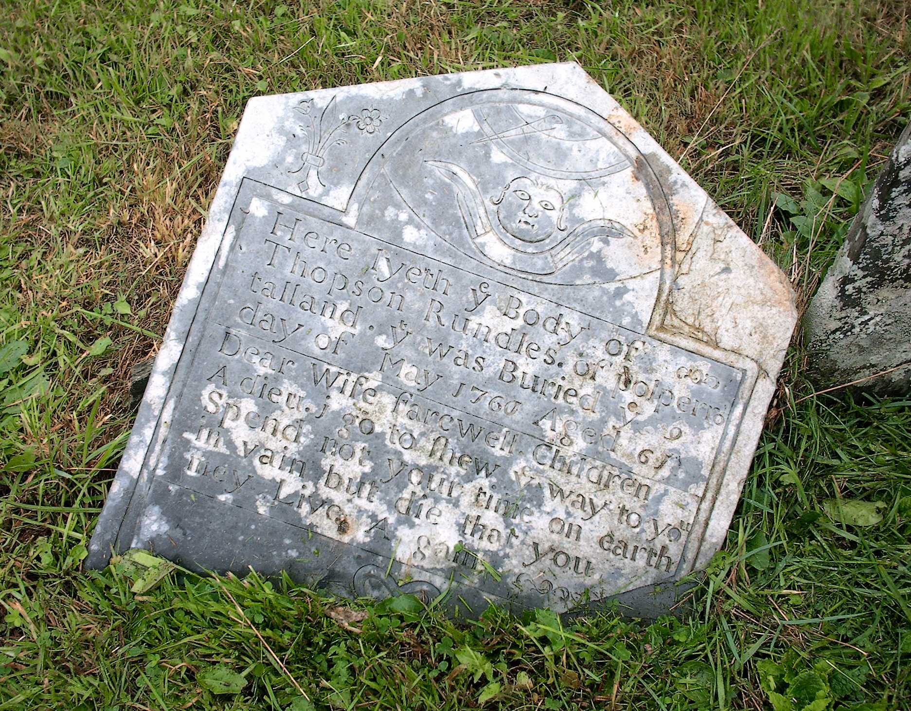 Headstone. 1760. In memory of Thopson Rundles of Polperro.
