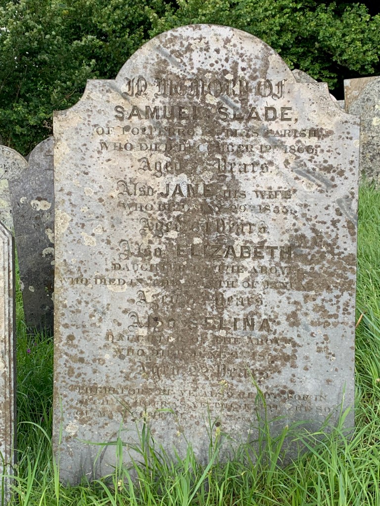 Samuel Slade (1789-1866) was the eldest son of Samuel (1762-1809) and Elizabeth Libby (1768-) who married at Talland in 1788. Elizabeth was the eldest daughter of John Libby and Agnes Minards.
