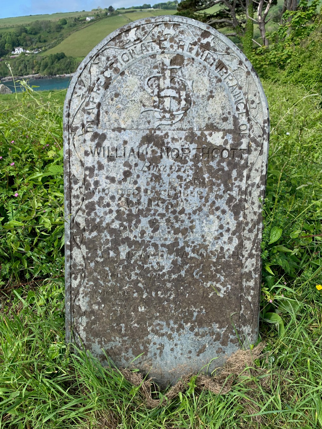 ~ Slate ~ Rounded top with centralised interwoven IHS motif and border of decorative leaves