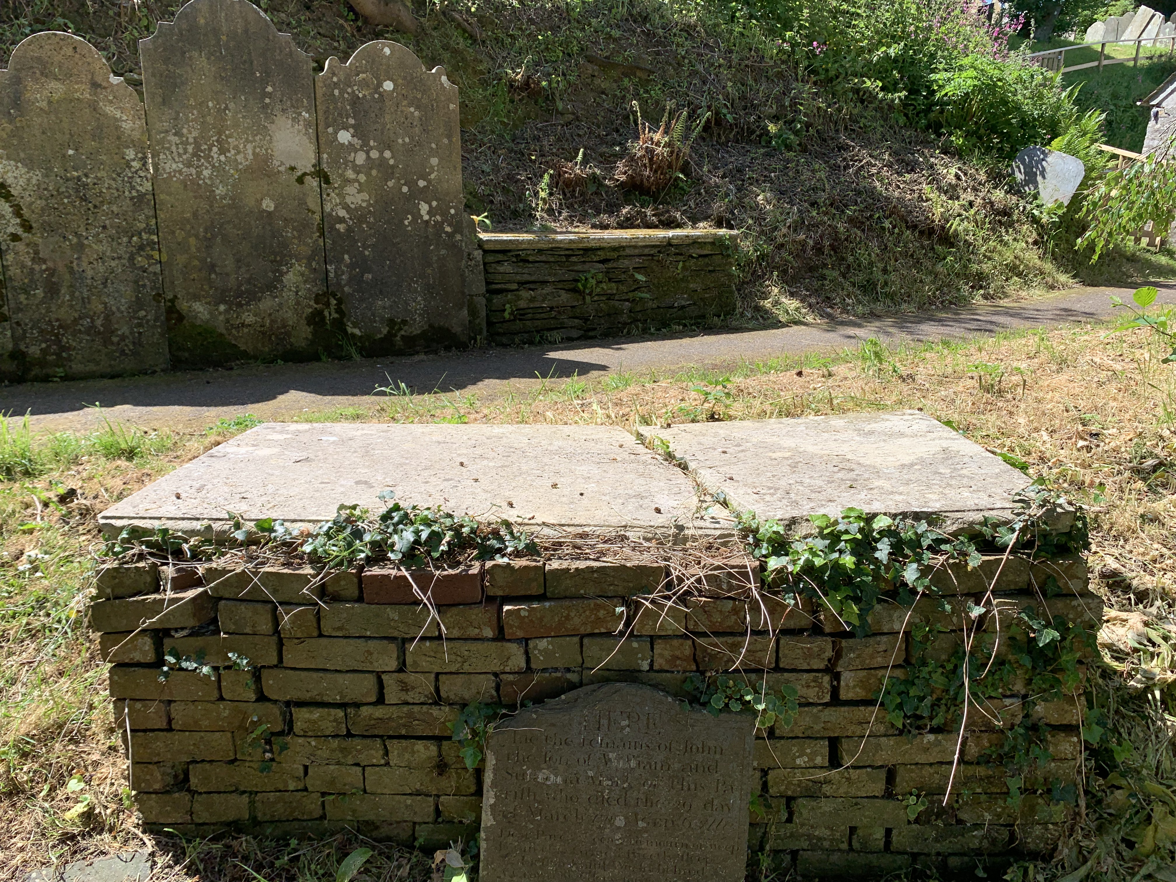 Grade II Listed Tombstone – paired with Headstone 59, as per Historic England photograph, although this tomb seems to be made of brick not stone rubble.