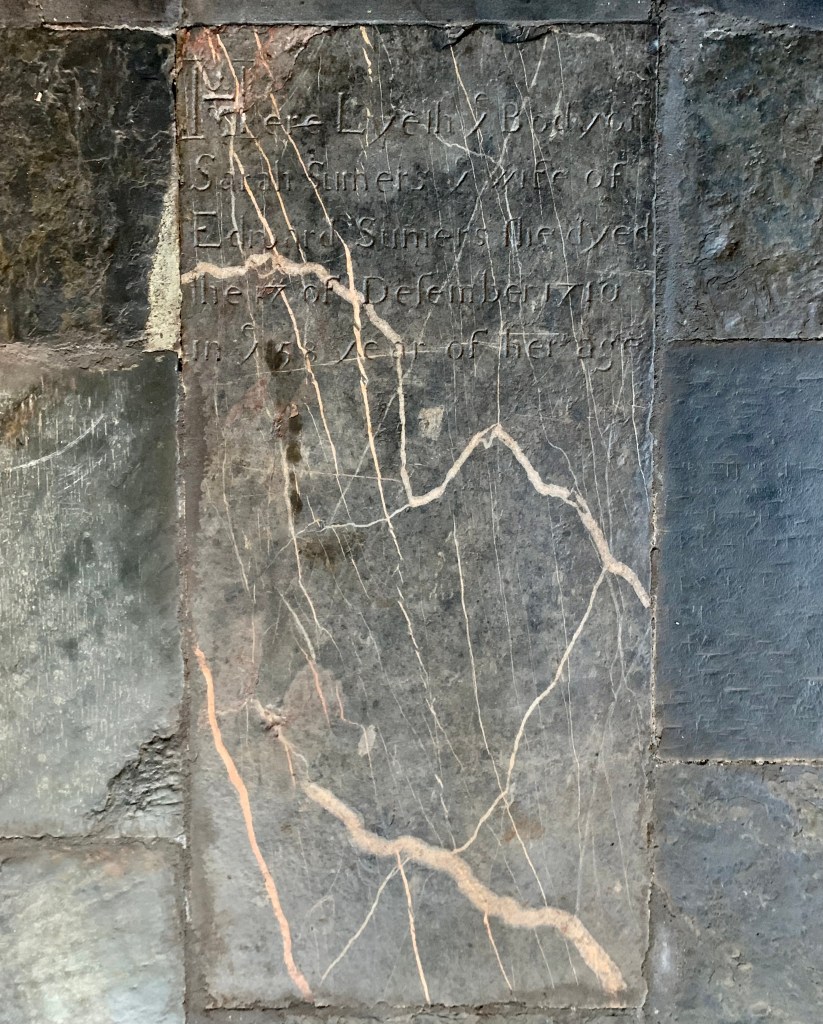 Hampshire records show a Will of widow, Sarah Summers née Durrant, of Hythe, Fawley, Hampshire, located on The Solent, dated 1710, which is where her husband, Edward Summers met his demise, as written on his ledger stone, dated 1708. They were married on 30th December 1675 in Fawley, Hampshire. Both marble stones are written in a similar style and script.