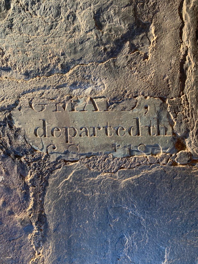 ~ Slate ~ a slither of a broken stone with roman lettering and dated in the 1800’s