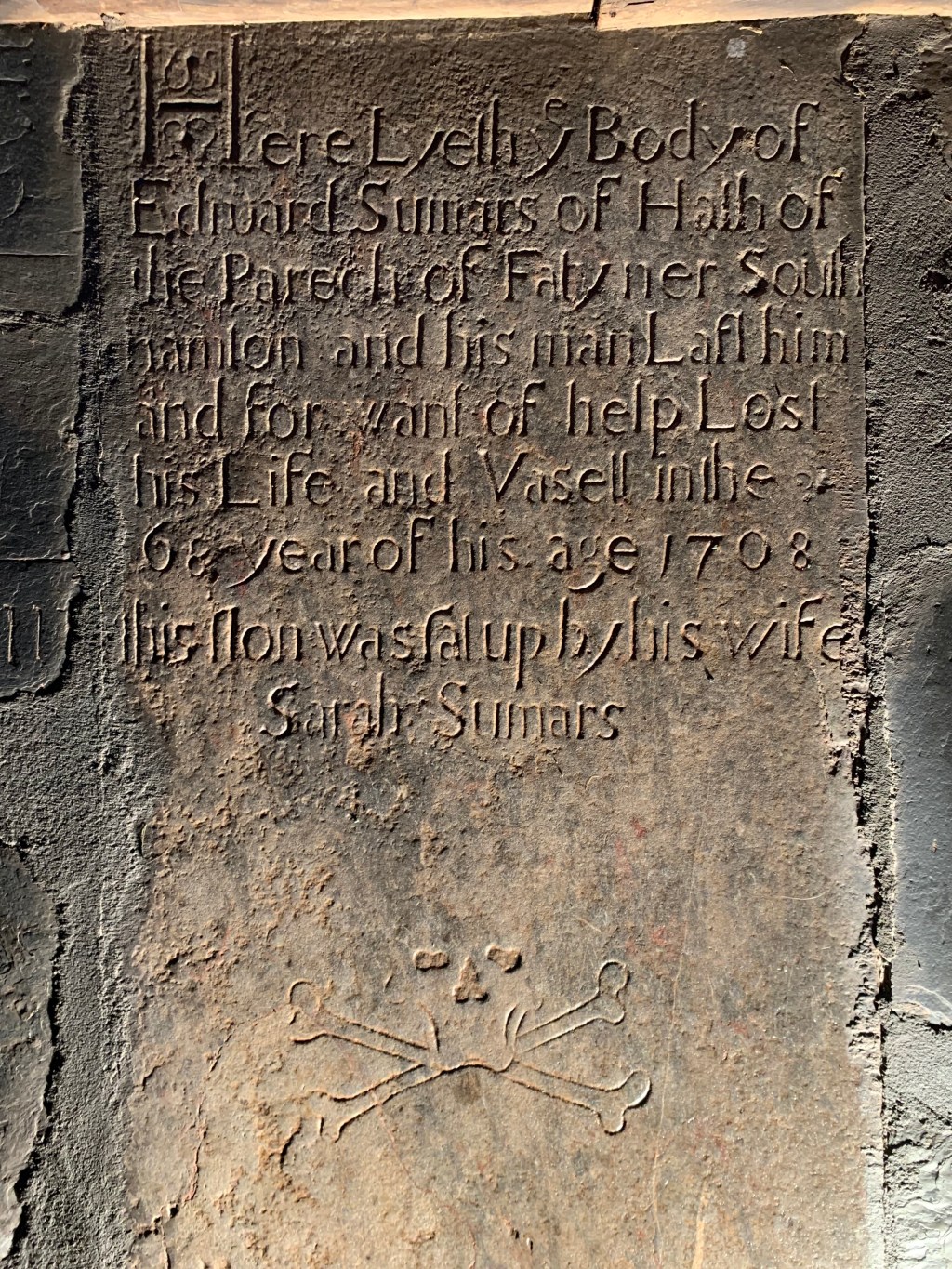 Hampshire records show a Will, dated 1710, of widow Sarah Summers (1652-1710) née Durrant, of Hythe, Fawley, in Hampshire, located on The Solent, which is where her husband, Edward Summers (1640-1708) met his demise, as written on his ledger. They were married on 30th December 1675 in Fawley, Hampshire.