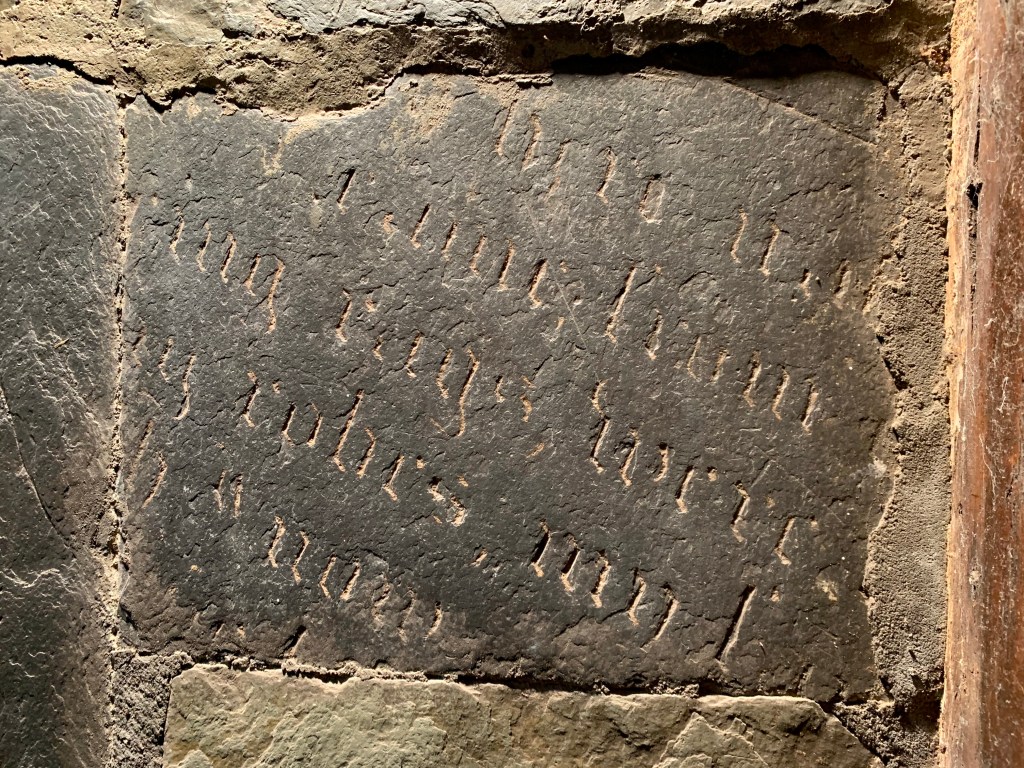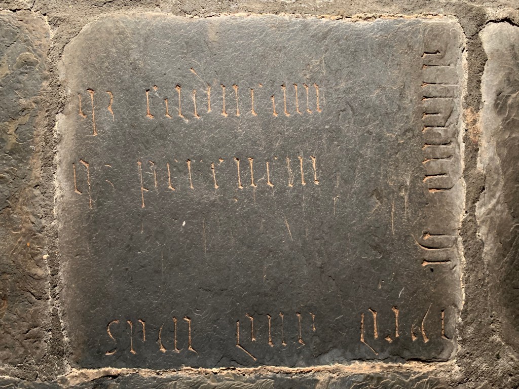 ~ Slate ~ A large fragment of a large stone with 17th century medieval script, which is worn and unclear