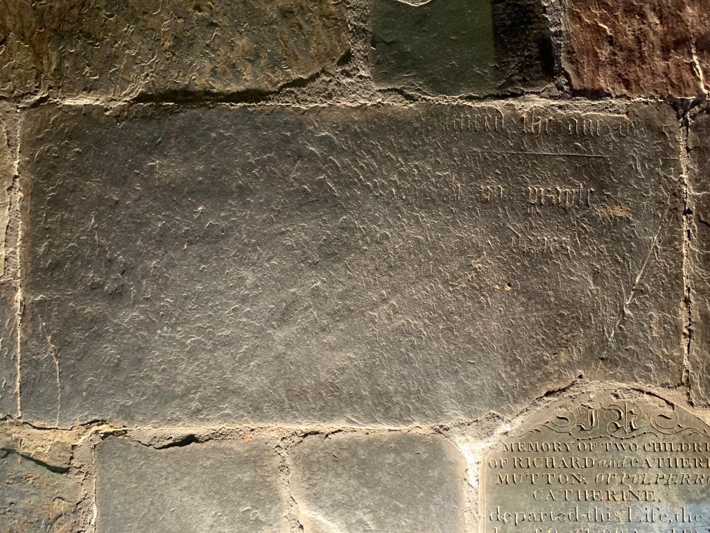Here at Talland our earliest ledger stones are made of incised slate and un-decorated, but quite distinctive and comprise of a marginal inscription surrounding a central dedication.