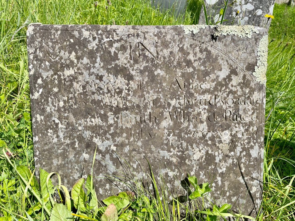 Faintly in the corner of stone, a simply incised arrow through a heart and hour glass,