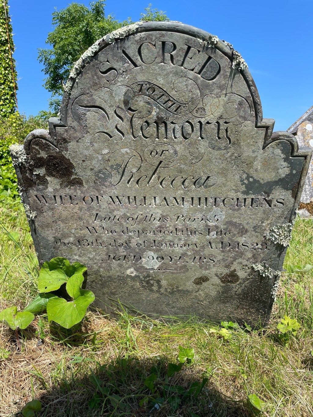 Sacred to the Memory of Rebecca wife of William Hitchens Late of this Parish Who Departed this Life the 3rd day of January AD 1823, Aged 90 Years