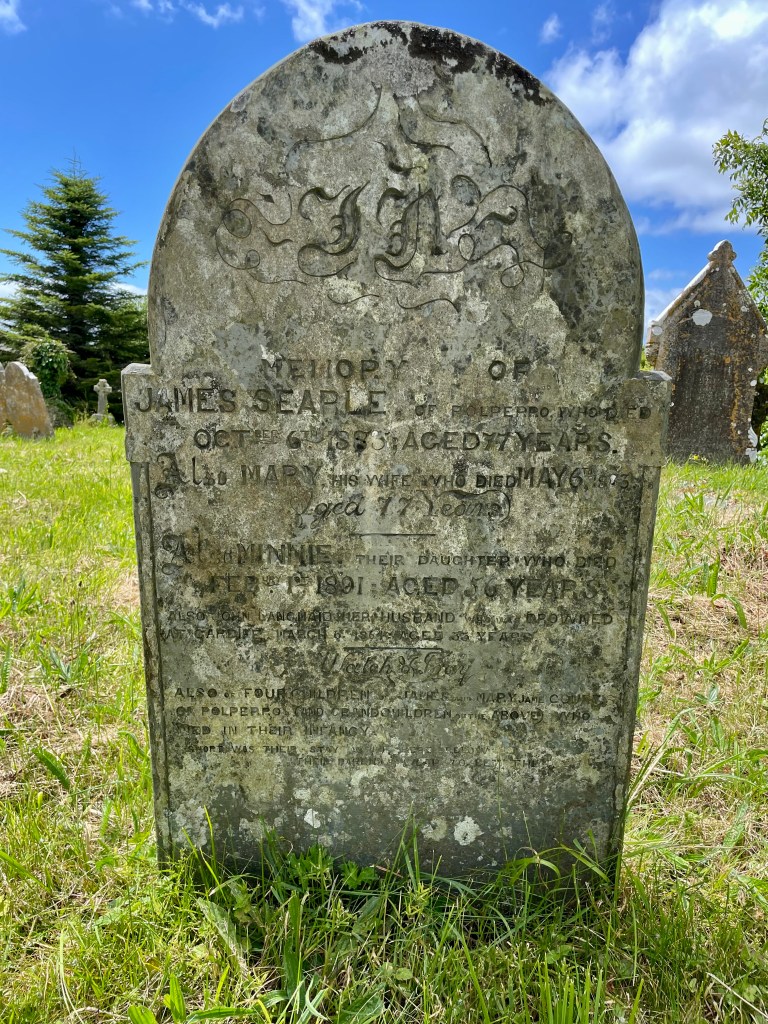 • 1871 Census: The Warren, Polperro- Fisherman James Searle, aged 75, born in Lansallos, with wife Mary and widowed daughter Mary Langmaid-is a possibility.